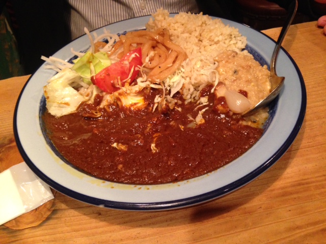 Mouyan Curry is our favorite curry in Tokyo so far. It is a very simple, all you can eat buffet with four types of curry: 1. Pork 2. Spicy Pork 3. Beef 4. Spicy . You can also pick different types of vegetables and salad. If you like curry, go to Mouyan!